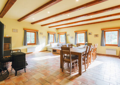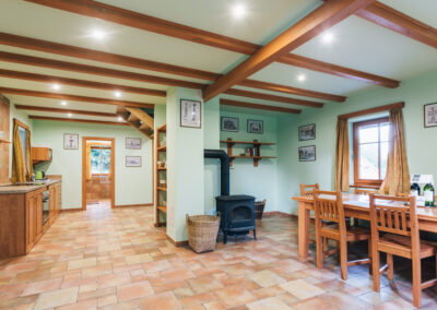 Chalupa leží vedle 18. jamky a stejně jak na Chalupě U lípy jsou zde dvě ložnice, obývací pokoj s krbem, vybavená kuchyň, koupelna s vanou a sprchovým koutem, samostatná toaleta… Zkrátka vše, co potřebujete pro dlouhodobý pobyt v Lužických horách.